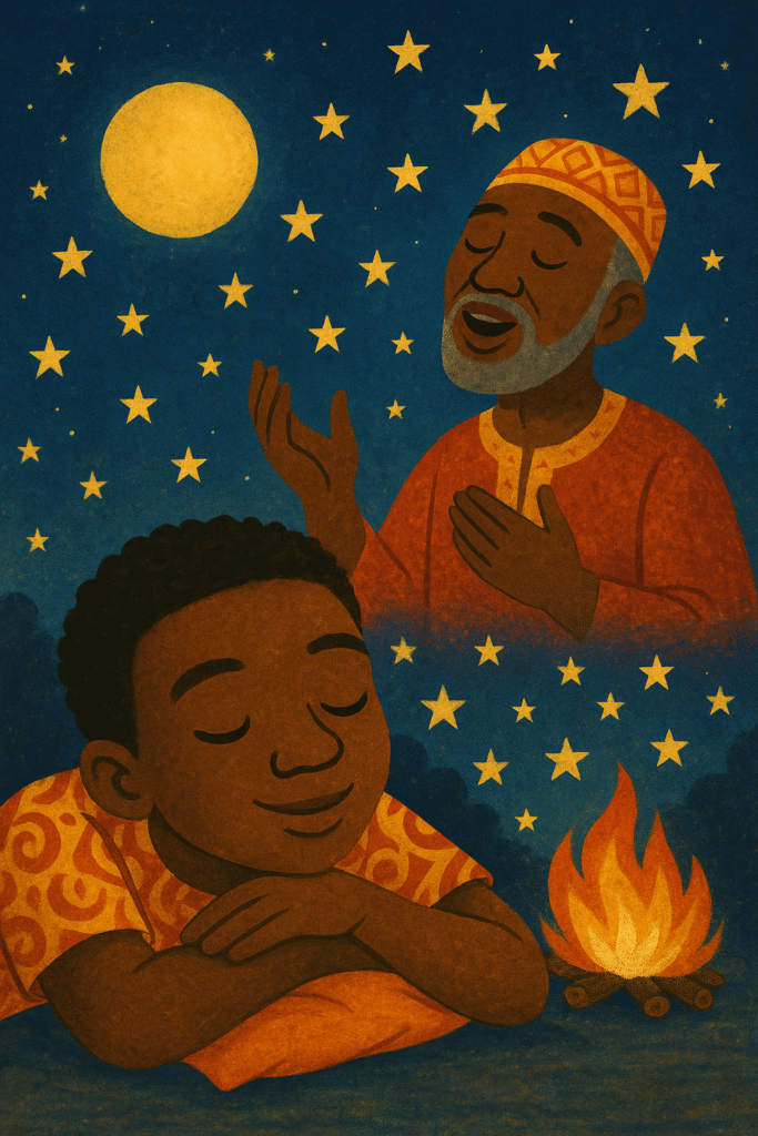 Une nuit, Samba fit un rêve merveilleux : il vit son grand-père chanter à la lune, et à chaque mot, une étoile brillante apparaissait dans le ciel. Ces étoiles illuminaient la nuit sombre et racontaient les histoires des ancêtres, des héros et des enfants courageux.